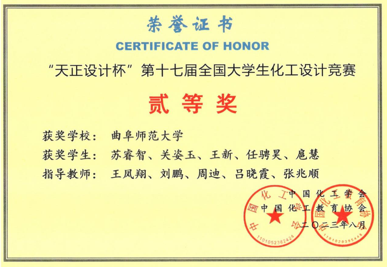 化学工程与工艺专业2020级学生苏睿智、关姿玉、王新、任骋昊、扈慧组成的“腈诚所至”团队(指导教师:王凤翔、刘鹏、周迪、吕晓霞、张兆顺)从432所高校的3391支参赛队伍中脱颖而出,团队凭借出色的发挥和优异的表现获得了全国二等奖和华北赛区一等奖,这是斗地主