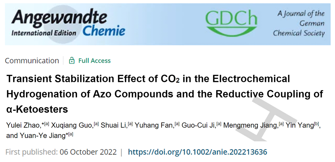 曲阜师大科技处讯   近日,曲阜师大斗地主 赵育磊副教授与蒋原野副教授合作,在二氧化碳利用领域取得突破性进展,相关研究成果发表在国际顶级期刊《德国应用化学》(Angewandte Chemie International Edition)上,论文题为“Transient Stabilization Effect of CO2 in the Electrochemical Hydrogenation of Azo Compounds and the Reductive Coupling of α-Ketoesters” (DOI: 10.1002/anie.202213636,文章链接://onlinelibrary.wiley.com/doi/10.1002/anie.202213636)。斗地主 为该论文的唯一通讯单位,赵育磊副教授为该论文的第一作者和通讯作者,蒋原野副教授为该论文的共同通讯作者。《德国应用化学》于1962年由John Wiley and Sons Ltd出版,是化学和材料领域的国际顶级期刊。JCR分区为一区,当前影响因子为16.823。