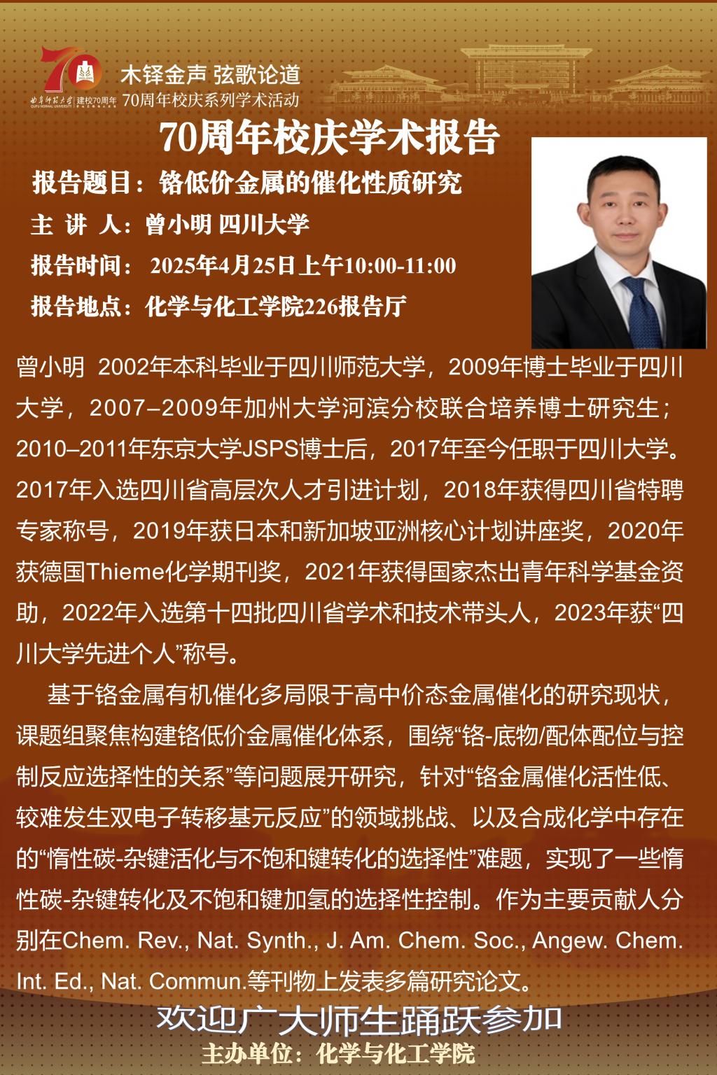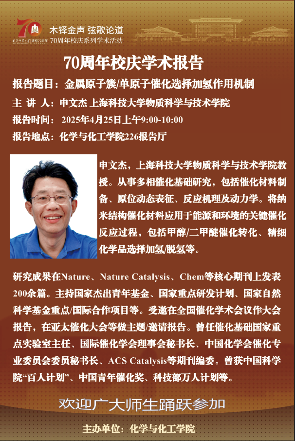 【4月25日】校庆70周年斗地主 系列学术报告二