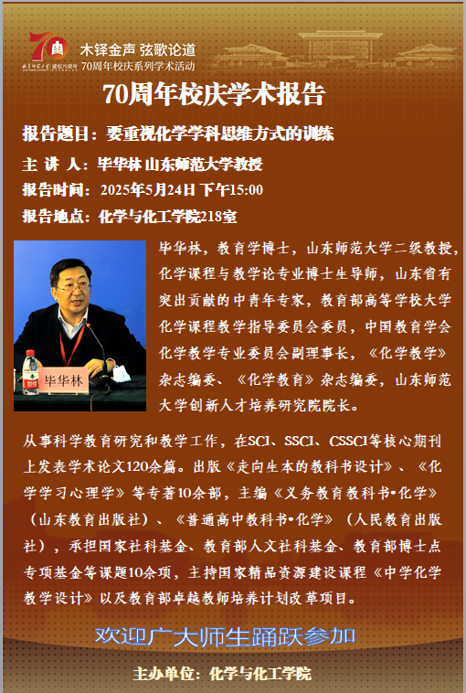 【5月19日】校庆70周年斗地主 系列学术报告四