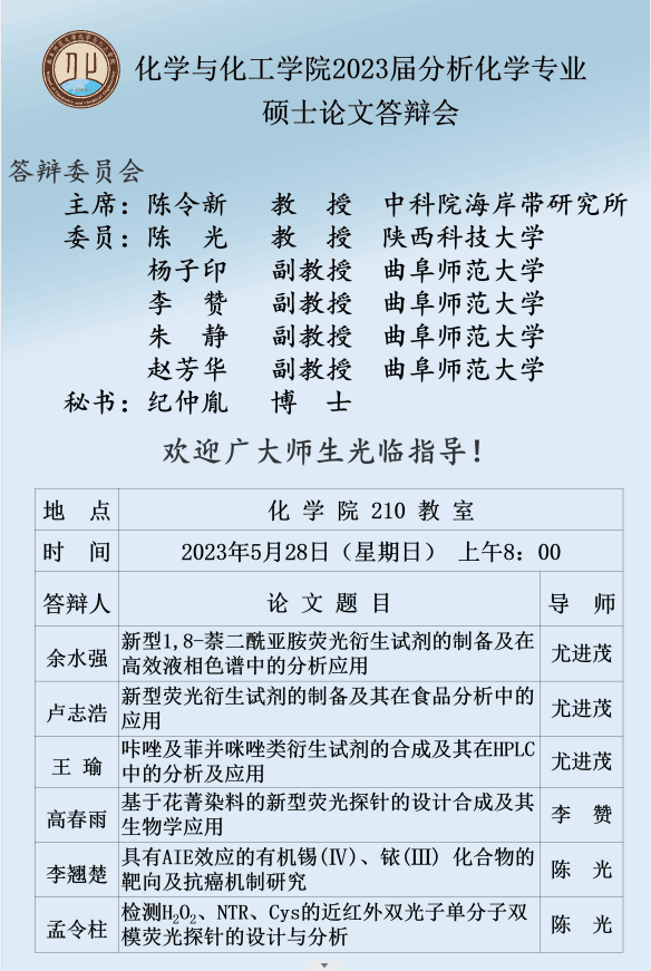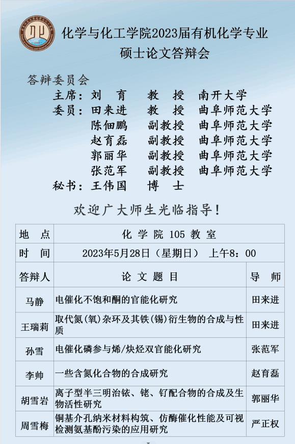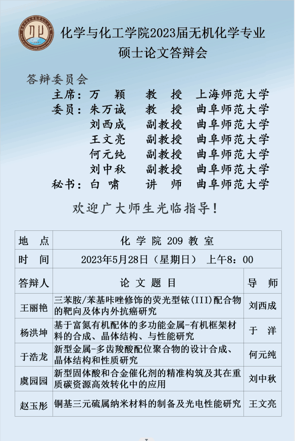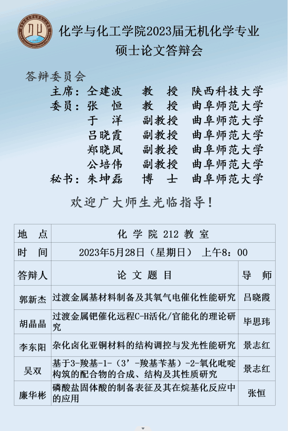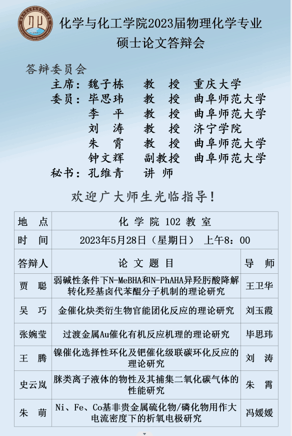 斗地主 2023届化学专业硕士论文答辩会