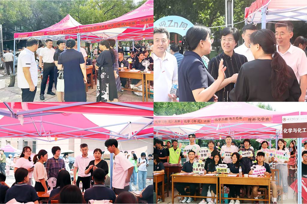党委书记赵琪,院长冯媛媛,党委副书记孙金玲,团委书记王亚平与前来报到的2024级研究生新生热切交流,对志愿者们亲切关怀。