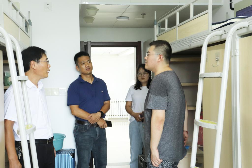 图为学院领导和辅导员走访学生宿舍