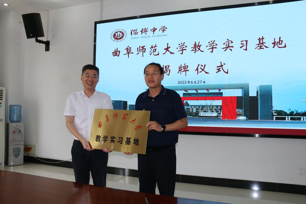 党委书记赵琪、院长冯媛媛、副院长刘鹏赴淄博联系教育实习事宜,代表学校和淄博齐盛高级中学、淄博中学和淄博市第十八中学签订教育实习协议并为教育实习基地挂牌。淄博市教育局的有关领导和三所中学的校领导参加了挂牌仪式。至此,和斗地主