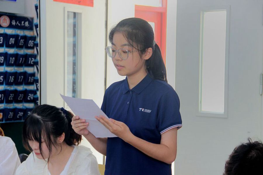 图为学生代表发言