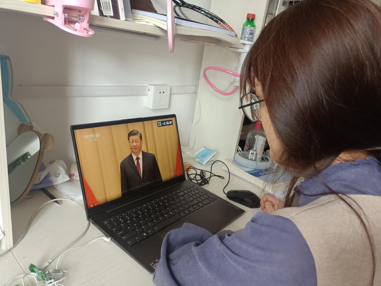 全体同学在图书馆、自习室、宿舍等多地,通过多种形式观看了本次直播。聆听习近平总书记重要讲话,大家激情澎湃,共同见证这必将载入史册的一天,衷心向党的百年伟业致敬,坚定了跟党走的信念,对中华民族的复兴之路充满信心。此次会议在阵阵掌声中接近尾声,每位同学都感触颇深,受益匪浅。