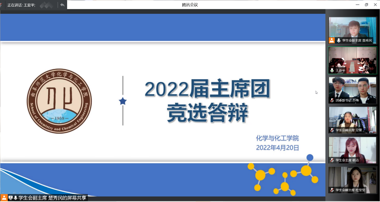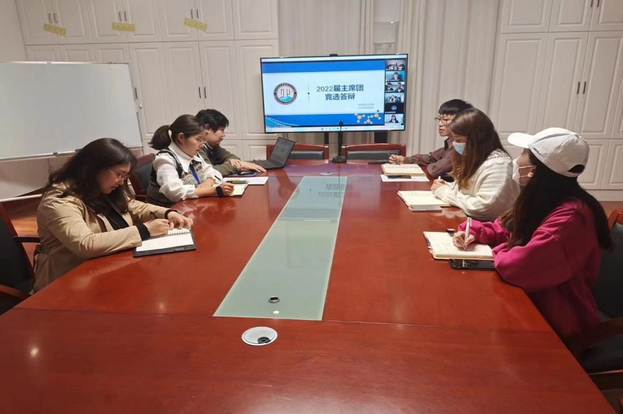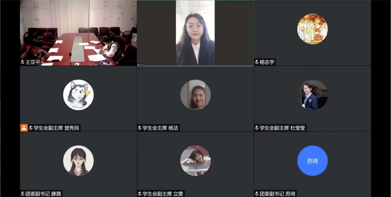 举行2022届主席团线上竞选答辩。学院党委副书记孙金玲、团委书记王亚平和各年级辅导员以及2021届主席团成员出席了本次竞选答辩。
