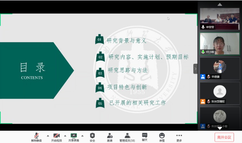 受疫情影响,本次答辩会议通过视频连麦和屏幕共享的线上方式举行。答辩现场,各位项目主负责人按抽签顺序开始轮流有序答辩,他们准备充分,思路清晰,语言流畅。各答辩人分别从项目背景、理论价值、实际应用价值、实施方案、预算、团队优势等多个不同方面出发,展开论述,短短的五分钟内将自己团队的训练计划项目简洁清晰地介绍给评审老师。展现出化院学生从容自信的临场发挥水平和优秀创新研究能力。现场评审老师们细心指导部门学生组织活动,认真倾听同学们的项目报告,严格规范地按照评分规则进行打分。其余候场同学皆在耐心等候的同时,或积极准备,或认真观摩学习。整场会议秩序井然有序,节奏紧凑适当,内容精彩纷呈,学术氛围浓厚。