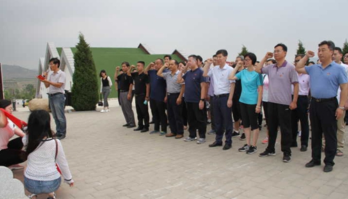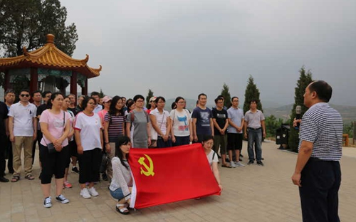 在尼山区红色教育基地,全体党员瞻仰了“尼山抗日烈士纪念碑”,并在纪念碑和鲜红的党旗前,全体党员重温了入党誓词,重新体会了入党时的激动与庄严。随后,文学院教工党支部书记任明华现场给大家上了一堂生动的党课,详细地讲述了鲁南根据地的建立、壮大过程以及对中国革命产生的意义与影响,引起了全体党员的强烈共鸣。
