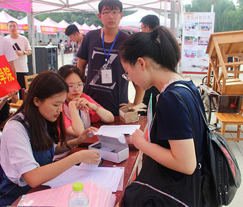 继续实行一对一接新生政策,保证迎新工作高效有序的进行。同时,在科技楼前设立了报道区、家长休息区、饮水区,方便服务新生和家长;在斗地主