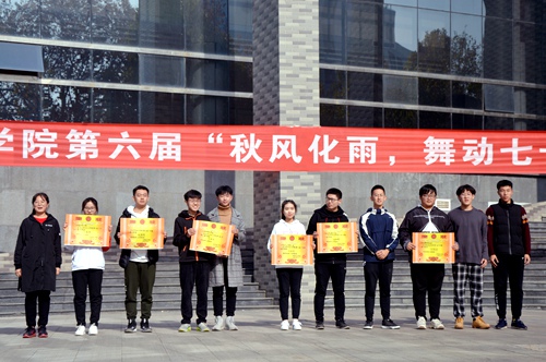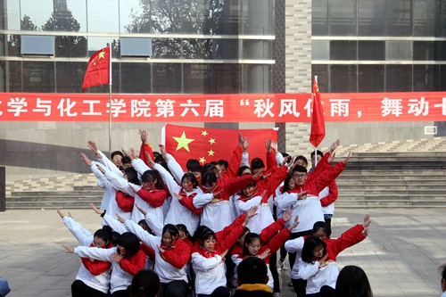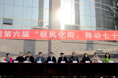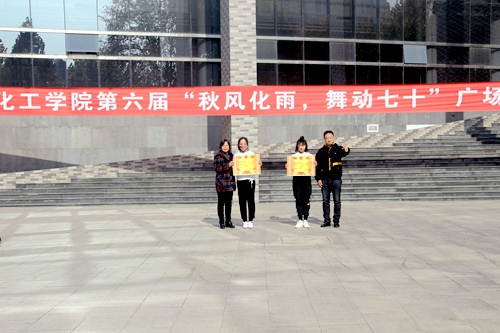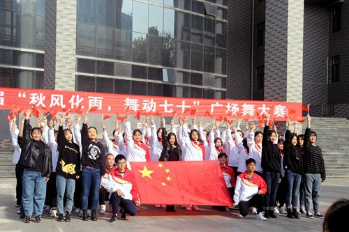 在大学生活动中心南侧隆重举办以“ 秋风化雨,舞动七十”为主题的第六届广场舞大赛。开幕式主席台就坐嘉宾有校党委常委宣传部长张隆海、校团委书记宋国栋、学生工作处副处长刘永礼、学院党委书记赵琪、学院党委副书记毛永正。舞蹈协会会长景志红、体育教学部葛瑞春、体育科学学院舞蹈教师王月敏、校啦啦队会长李玲、学院团委书记孙金玲担任评委。斗地主
