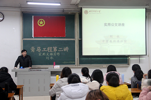 报告伊始,刘永老师简单介绍了公文的基本知识,让同学们对公文进行初步了解。随后,他细致讲解了四种常用应用性文本,即工作计划、工作总结、讲话稿及总结。刘永强调,总结是检验计划落实的重要方法,各工作单位应做到“年初有计划,年末作总结”,并且在内容上具有独特性,在形式上做到别出心裁。他结合自身工作经验,运用具体实例,依次从标题、导语等五个部分具体解说实用性文本的格式和要求。最后,刘永介绍了公文语言的特点和要求,指出公文语言应当准确和规范,并希望同学们在之后的学生工作中,使用规范性用语。同学们精神饱满,认真聆听,在同学们热烈的掌声中,报告会圆满结束。