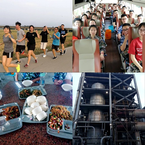 副院长冯媛媛,辅导员老师到出发地送学生,实习指导老师带领同学们来到各实习点,同学们先来到实习宿舍,安排好行李,办理必要的证件。之后,大家集合进行安全培训并且进行了测试,安全员提醒同学们安全比什么都重要,这也为同学们的实习打了个好的开始。工厂师傅们认真负责,带着每小组参观车间现场,为同学们悉心讲解了各个车间的主要任以及操作流程,包括开停车的相关动作。随后,同学们又进一步了解车间任务。在此期间,大家互帮互助,相互鼓励,利用休息时间互相交流,加深彼此的了解。老师也为同学们准备了多样的活动,同学们经常以小组为单位围坐桌前,品尝着饭菜,交流着实习收获,积极的抒发自己的见解和想法,感受着融洽的氛围。