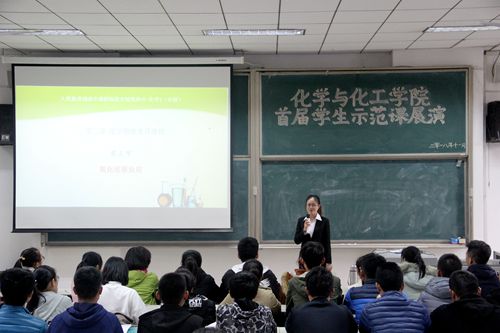 教务处处长胡钦晓、学院党委书记赵琪、学院院长尤进茂、学院党委副书记孙俊华、学院副院长冯媛媛、学院教法教研室主任姬广敏、学院教法教研室老师苗深花、学院团委老师王亚平出席本次活动。本次活动还邀请了在第五届全国高等院校化学专业师范生教学素质大赛及第六届全省师范类高校学生从业技能大赛中获得优异成绩的邢慧君、王博、邢梦凡、顾磊、戚振佳五位同学担任主讲,展示授课技能。学院2017级、2018级部分同学参加了本次活动。