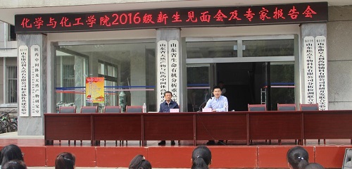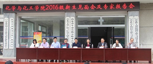 2016级师生见面会及“立志、学习、成才”系列报告会在院楼前广场上举行。参加此次会议的有学院党委书记杨志英,院长尤进茂,党委副书记孙俊华,副院长丁养军、毕思玮,团委书记胡乃永,办公室主任陈光,物理化学教研室主任冯媛媛,教学秘书胡蕾。此次见面会由团委书记胡乃永主持。