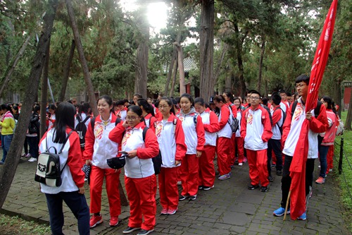 时值深秋,同学们统一身着系服,精神抖擞,为此次徒步游“三孔”活动做了充分的准备。天还未亮,便已在化学楼前整装待发。在辅导员张乾坤及助理范川和大一各班班长的带领下,四百余人的队伍整齐划一,井然有序,大部队于早晨八点到达孔庙门前观看开城仪式。在三个小时的游访中,同学们认真听取导游讲解,与导游探讨孔家文化,收获颇丰。中午十一点,全体人员进行合影留念,至此,2016年新生游“三孔”活动圆满结束。