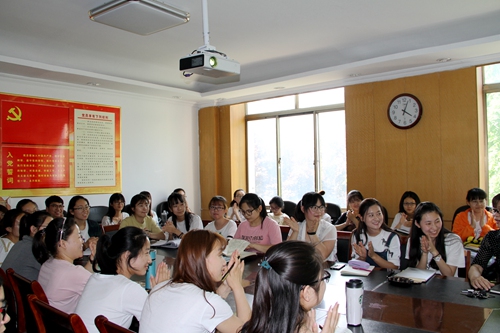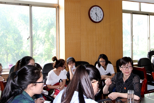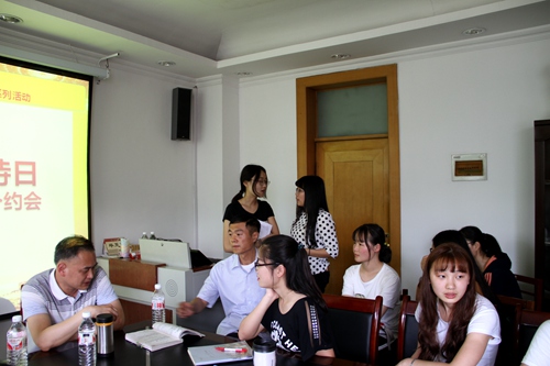 首先,教工党支部书记冯媛媛向各位同学介绍了“党员接待日”活动的形式和意义,并代表教师党员对大家的到来表示欢迎,鼓励大家畅所欲言,走近教师,积极主动与老师们交流,解决学习及思想上的困惑。随后,学生们分别与各位老师进行了交流,老师们耐心作答,并对学生们考研、就业等方面提出了建议。最后,冯媛媛对本次活动作了总结,要求同学们要树立远大理想,做好人生规划,把个人理想的实现和国家经济社会发展有机结合起来,要在学习、科研、生活中更加严格的要求自己,实现出彩的人生。