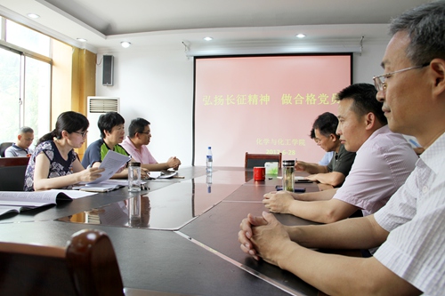 杨书记首先深情回忆了参与学校举办的“追忆红色足迹,熔铸民族之魂”主题党性教育培训过程,用自己对长征路途艰难的切身体会,缅怀了先辈不怕牺牲,坚韧不拔,忠诚爱国的长征精神。杨书记指出,在新形势下,我们更要弘扬长征精神,做合格党员,首先要坚定理想信念:要学理论,学榜样,加强党性锻炼;其次要讲规矩,守纪律:要认真学习党章党规,作为教工党员,还要学习有关师德师规;第三要全心全意为人民服务:主动敬业修德,不断提高业务能力,做学生健康成长的引路人;第四要有攻坚克难的奋斗精神:将这种精神贯穿到教育教学、科学研究、人才培养和教育管理的全过程。