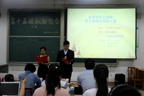 “天之骄子”创业社主办、大学生就业服务部、综合治理部协办的第十届模拟招聘会决赛在综合楼203成功举办。孔德生、蒋原野、孔荣梅、于洋四位老师共同担任此次活动的评委。