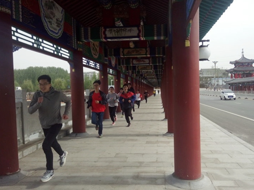拉练活动成员从学校出发,意气风发地徒步向蓼河公园前进。拉练过程中,队员们团结友爱,互帮互助,浩荡恢弘的队伍组成了一道靓丽的风景线。尽管路程遥远,但同学们却没有停下奔跑的脚步,坚持到底,以实际行动证明自己的实力。