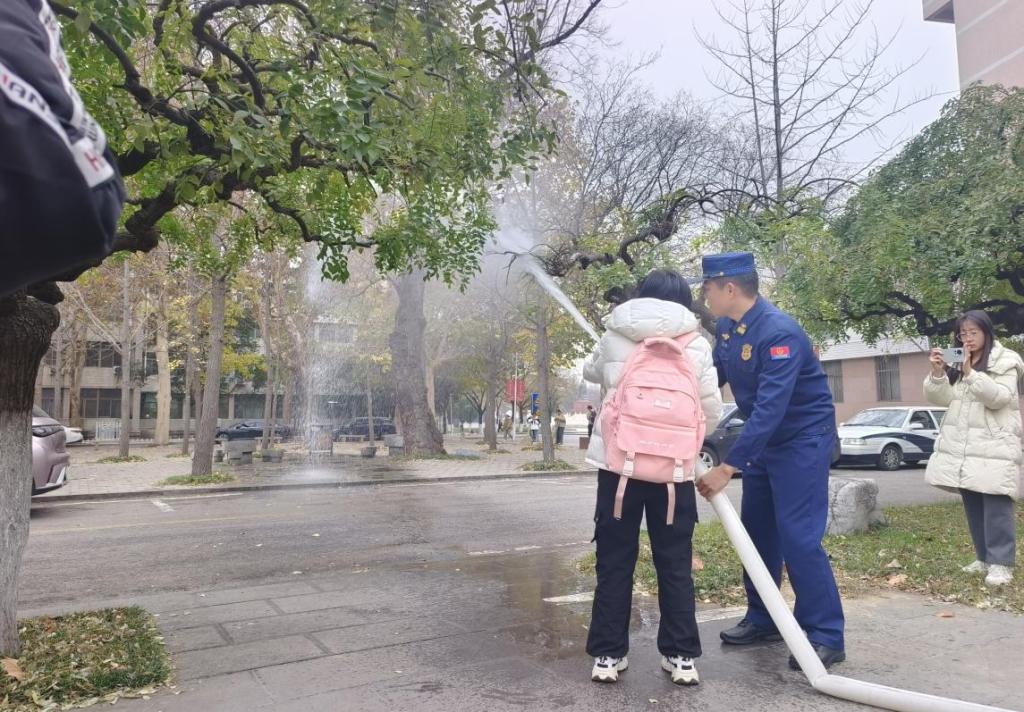 活动伊始,学院党委副书记孙金玲致辞,她表示,消防无小事,防范是关键,希望同学们能够提升消防安全意识。之后,消防队长王磊对同学们进行了消防安全知识的讲解以及现场指导教学,他鼓励同学们踊跃尝试使用灭火器和消火栓,同学们热情高涨,许多同学表示在动手尝试之后才真正明白了消防设施的使用方法。最后,夏玉鑫老师对本次活动进行了总结,希望同学们在以后的生活和学习中,积极主动地践行消防要求,自觉维护消防设施,努力学习和传播消防知识,提升自己的消防安全应急能力。