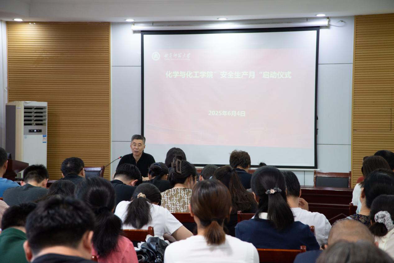 启动仪式上,赵琪书记讲到安全生产是学校和学院事业发展的底线和红线,化学学科具有实验性强、涉及危险化学品多等特点,安全生产工作尤为重要。他指出,开展“安全生产月”活动,是贯彻落实上级安全生产决策部署的重要举措,是提升师生安全素养、防范安全事故的有效途径。随后,教师和学生代表共同观看了《安全生产月公益视频》。
