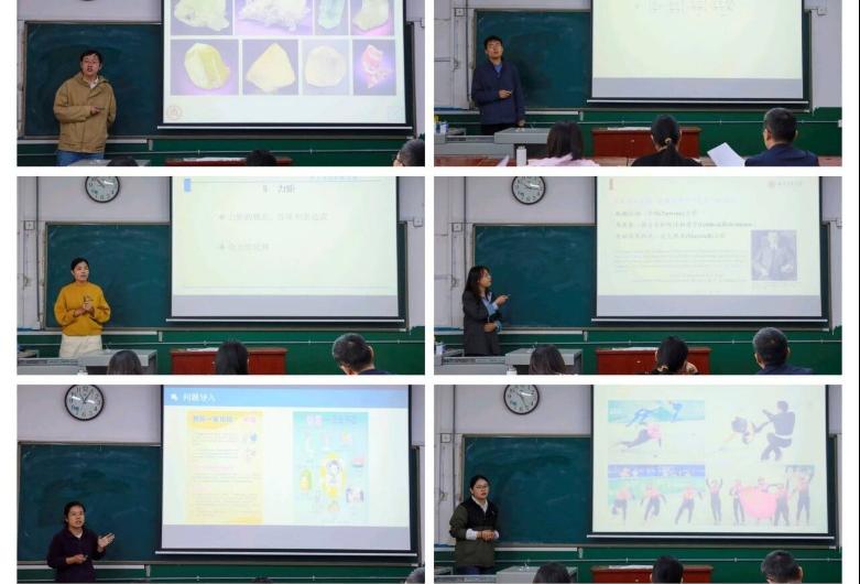 的五位年轻教师张丹、张大鹏、王凯凤、冯瑾和巩云云准备充分,认真进行教学设计,思路清晰,方法多样,在传统板书的基础上利用教学辅助道具和演示实验等手段,把各自的教学特色展示得淋漓尽致,展示了实际教学水平,取得非常好的教学效果。这五位老师被推荐到学校,代表斗地主