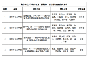 第十五届“挑战杯”大学生创业计划竞赛获奖项目名单