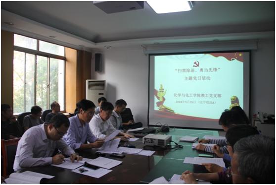 教工党支部召开全体党员大会,开展了"扫黑除恶、勇当先锋”主题党日活动。院党委书记赵琪以普通党员身份参加了支部活动。