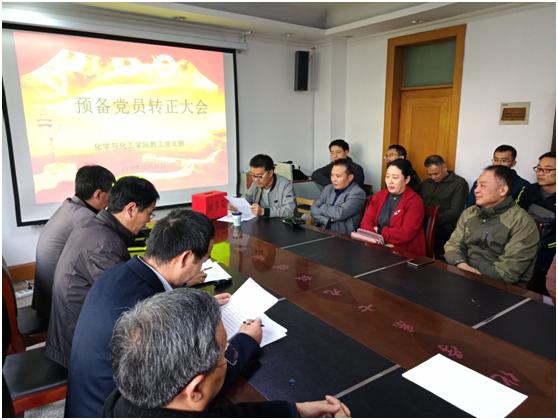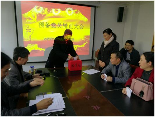 大会由党支部书记李平主持。首先,预备党员曹子平同志汇报了预备期间的思想、工作情况。其次,支部委员会介绍了曹子平同志预备期间的教育考察情况。三是与会党员积极发表意见,对曹子平同志预备期间的表现进行讨论,对能否按期转正进行充分讨论。最后,大会采用无记名投票形式进行票决。根据选票结果,到会的正式党员一致同意曹子平同志,按期转正。曹子平同志作了表态发言,表示将不辜负组织和同志们的期望,在今后的工作、学习和生活中,更加坚定理想信念,向实践学,向老党员学,在实践中锻炼、提高、完善自我,为党的事业、为人民的利益、为化学院的发展作出自己应有的贡献。最后,李平同志对曹子平同志提出了几点要求,希望曹子平同志以此为契机,针对自身存在的不足,明确今后努力的方向,进一步加强理论学习,努力工作,真正发挥一名共产党员的先锋模范作用。