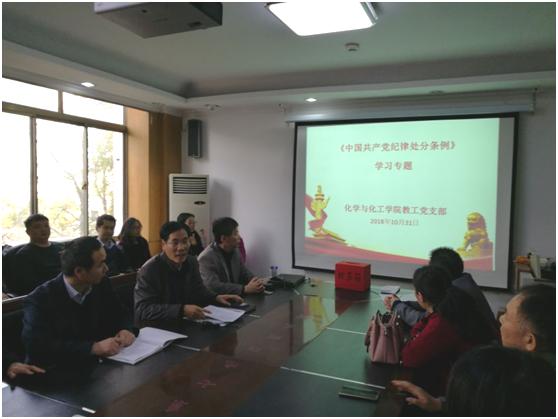 2018年10月31日,教工党支部召开全体党员大会,讨论了预备党员曹子平转正事宜,并对新修订的《中国共产党纪律处分条例》进行了专题学习。