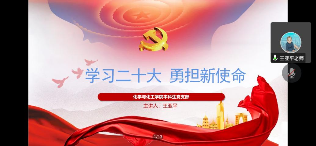 组织党支部全体成员于线上开展“学习二十大,勇担新使命”主题党日活动。本次活动由党支部书记王亚平主持。