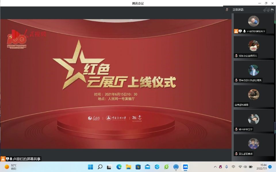 7月1日,学院本科生党支部于腾讯会议组织广大师生党员集中参观“红色云展厅”,个人自行借助于5G云技术观看学习各地革命博物馆、纪念馆、党史馆、烈士陵园等,并作分享交流。