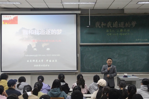 10月28日下午,“先锋论坛”第三讲在综合楼101教室举行,“泰山学者”海外特聘专家王桦教授作了题为“我和我追逐的梦---国内外创新创业之旅”的精彩报告;学院党委书记赵琪主持了本次论坛。赵书记首先向大家介绍了王桦教授及其取得的一系列科研成果。王桦教授是我校第一位从海外引进的山东省“泰山学者“海外特聘专家,也是本省第一位“泰山学者”科研团队党支部书记,先后在湖南大学、美国博伊西州立大学、美国太平洋西北国家实验室、新加坡生物工程与纳米研究院等地学习和工作,是医学与环境检测器件、纳米功能材料、药物绿色合成等领域国内外知名学者。