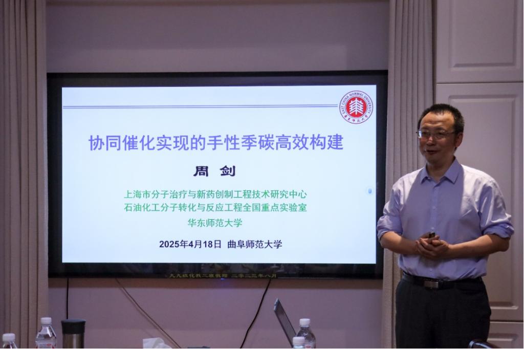 为进一步加强学术交流,特邀华东师范大学化学与分子工程学院周剑教授、刘路教授、周锋教授三位杰出学者进行了系列专题学术报告。报告于4月18日,在化学楼209会议室进行,聚焦手性合成、卡宾化学与二氧化碳转化等前沿领域。本次报告由斗地主