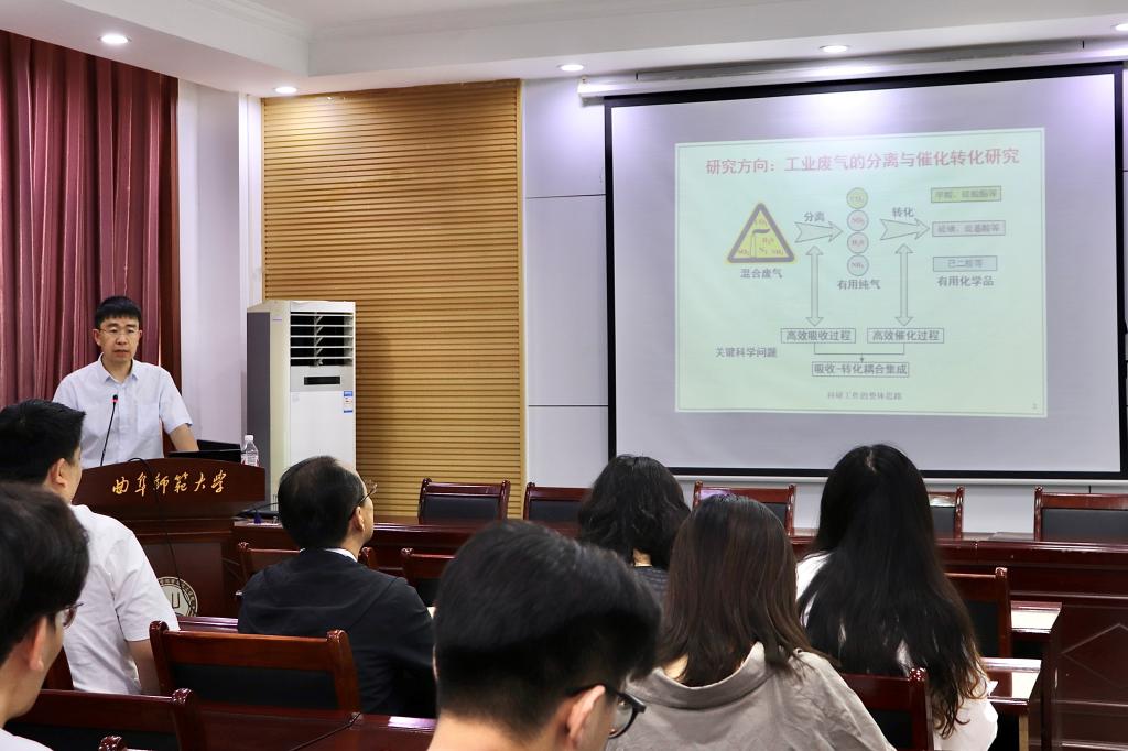 特邀南京大学胡兴邦教授于5月19日在化学楼226会议室进行了专题学术报告。报告题目为:二氧化碳高效加氢制甲酸研究与开发,报告会由学院副院长李平教授主持,学院师生代表80余人参加。