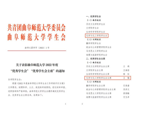 学生会荣获“优秀学生会”称号,学生会主席王楠荣获“优秀学生会主席”称号。