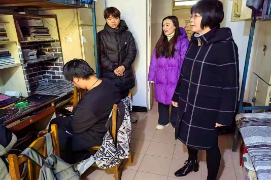 图为学院老师和学生干部进行宿舍走访