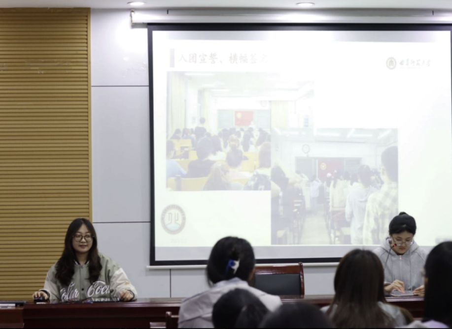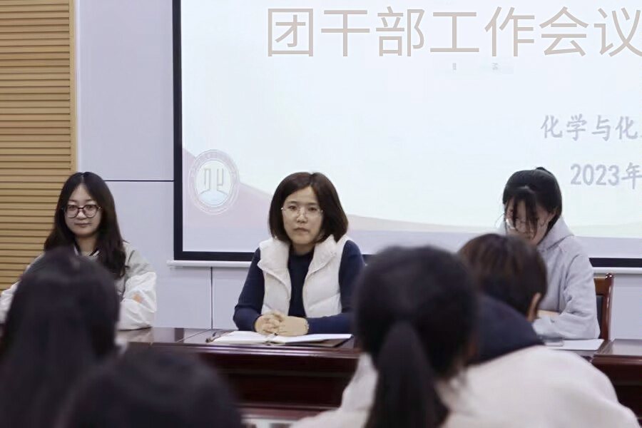 于化学楼226召开团干部会议。本次会议由学院团委副书记罗欣玮主持,学院团委书记王亚平和团委副书记卢容钰主讲,学院各级团干部参会。