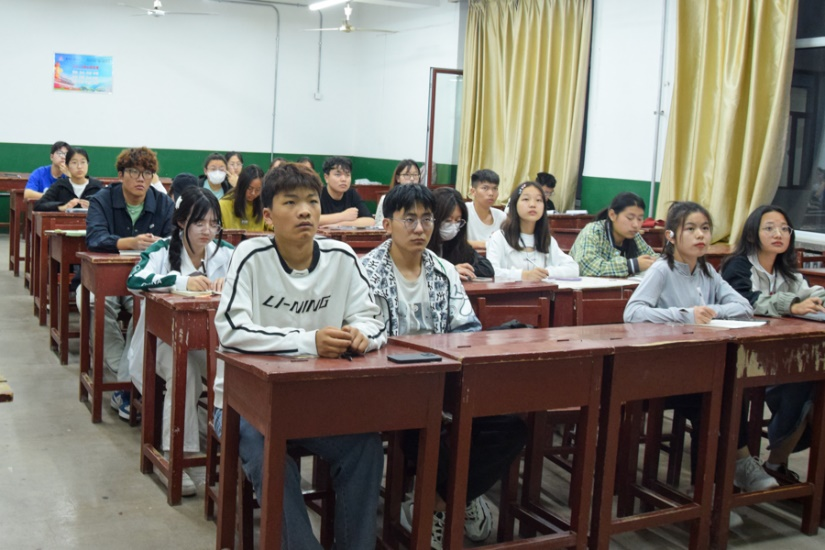 图为同学们正在观看经验分享会