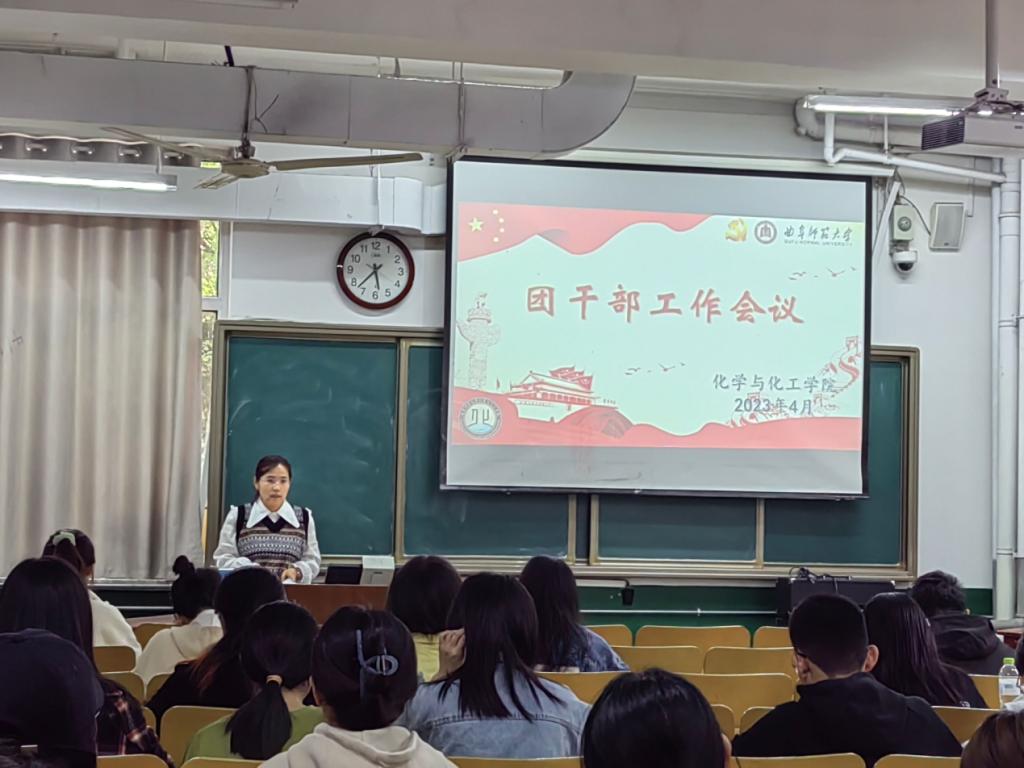于化学楼134召开团干部会议。本次会议由学院团委副书记卢容钰主持,学院团委书记王亚平和团委副书记卢容钰主讲,学院各级团支书及组织委员参会。