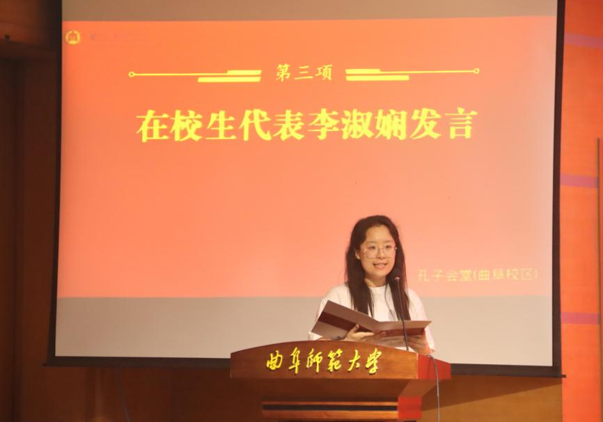 接着,在校生代表李淑娴以经历两年大学生活的师姐身份,从四个方面为新生提供学习和生活经验,帮助新生更快地适应大学生活。新生代表王桦谦发言,号召同学们脚踏实地,追求真理,知行合一,积极参加社团和各类组织,踊跃地投身于社会实践中去,度过一个有意义的大学生活。