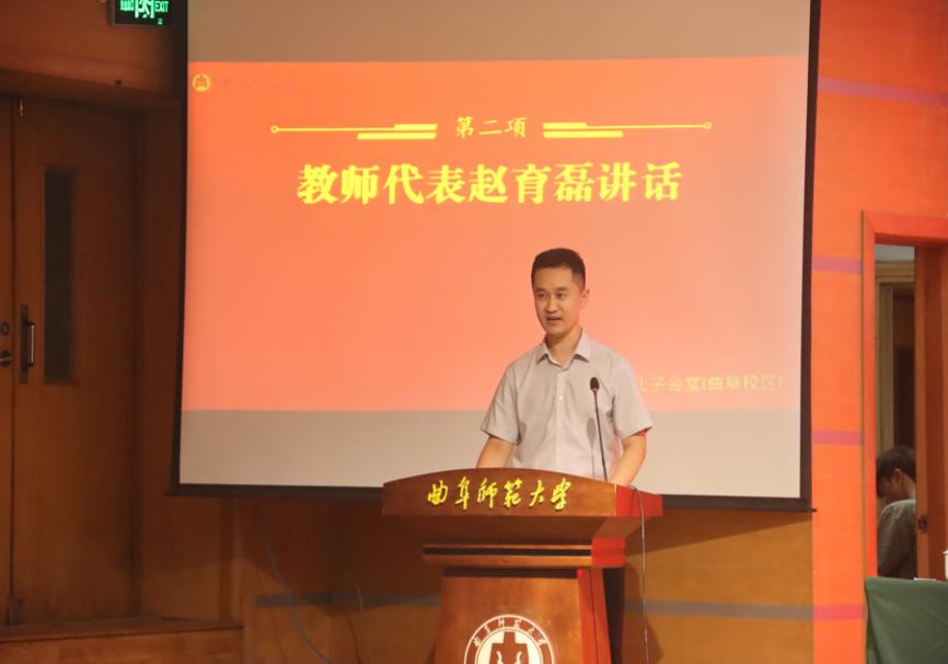 随后,教师代表赵育磊老师向同学们提出了学习建议,鼓励同学们积极参加科研训练,在课余时间积极去实验室参观学习,丰富科研经历,增长自身才干。
