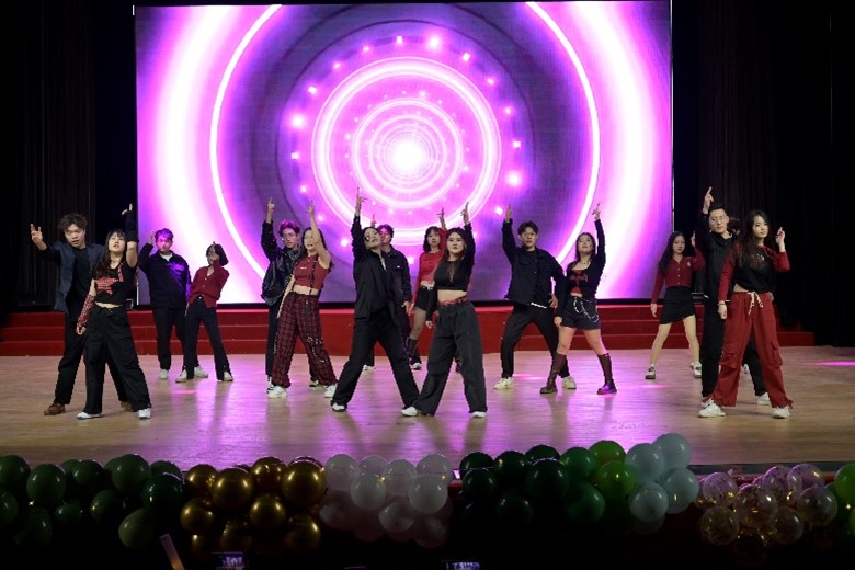 晚会在精妙绝伦的舞蹈《最红派队》中拉开帷幕。然后,连续的节目丰富了同学们的视觉盛宴,小品表演《甄嬛后传》诙谐幽默,点燃了现场热闹的气氛;由张大鹏老师带来的歌曲演唱将晚会推向了高潮;走秀《非诚勿扰》,美丽与力量并存,激情与智慧交织;乐队歌曲《没有理想的人不伤心》《想去海边》唱出了观众的心声,唤醒了他们的梦想。之后在晚会上,一段充满欢乐和感动的视频引领2023级新生回顾了开学以来的大学生活,短暂却充实。最后,晚会在2023级班长、团支书带来的歌曲《夜空中最亮的星》中画上圆满的句号。