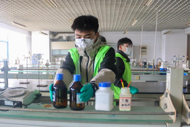 图为志愿者摆放实验药品