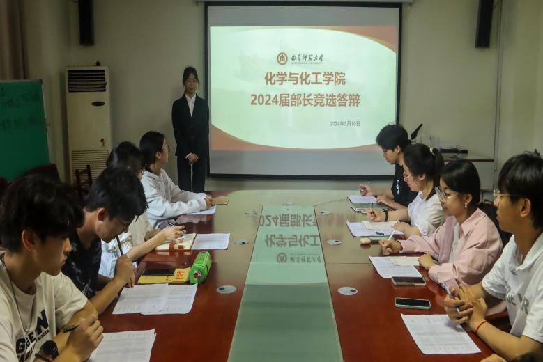 团委学生会部长换届竞选答辩于化学楼218会议室成功举行。出席本次竞选答辩的评委有学院团委书记王亚平,2022级辅导员冯德浩,2023届和2024届团委、学生会主席团成员。