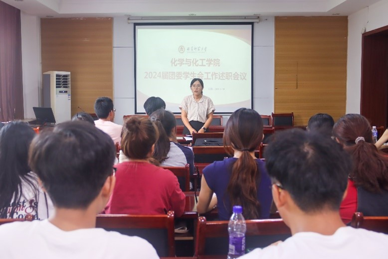 于化学楼226会议室召开了2024年上半年团委学生会部门述职报告会议。参加此次会议的有学院团委书记王亚平,主席团成员以及各部门部长。