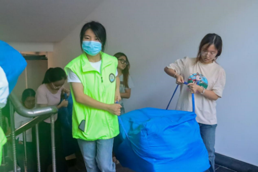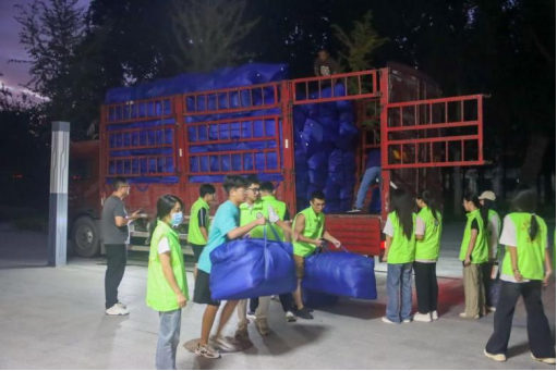 2023级全体本科生于校内公寓二号楼与西公寓六号楼为新生搬运被褥。2024级辅导员梁梦琦参与本次工作。