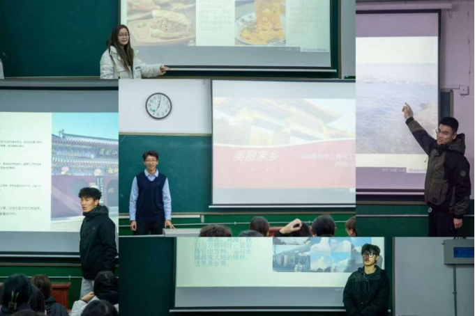 班会伊始,李子瑞主持开场,提出家乡是我们每个人内心永恒的坐标。接着,班级中来自全国各地的同学通过精心制作的PPT、短视频以及生动的讲解,全方位介绍了自己家乡的自然风光、名胜古迹、特色美食以及民俗文化。在互动交流环节,同学们围绕家乡的传统文化传承、旅游发展等话题展开了热烈讨论。最后,学院党委副书记孙金玲做出总结,强调同学之间要深入了解,可以以分享家乡趣事为媒介来增进友谊、增进班级凝聚力。