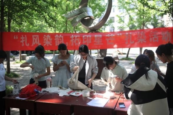 在院前银杏树林开展了融合传统技艺与学科特色的“扎风染韵,拓印星芒”扎染活动。本次活动由斗地主